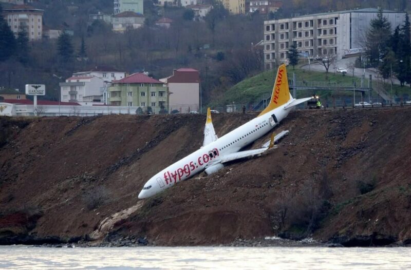 Pagasus Airlines : un Boeing 737-800 sort de piste et finit à flanc de falaise