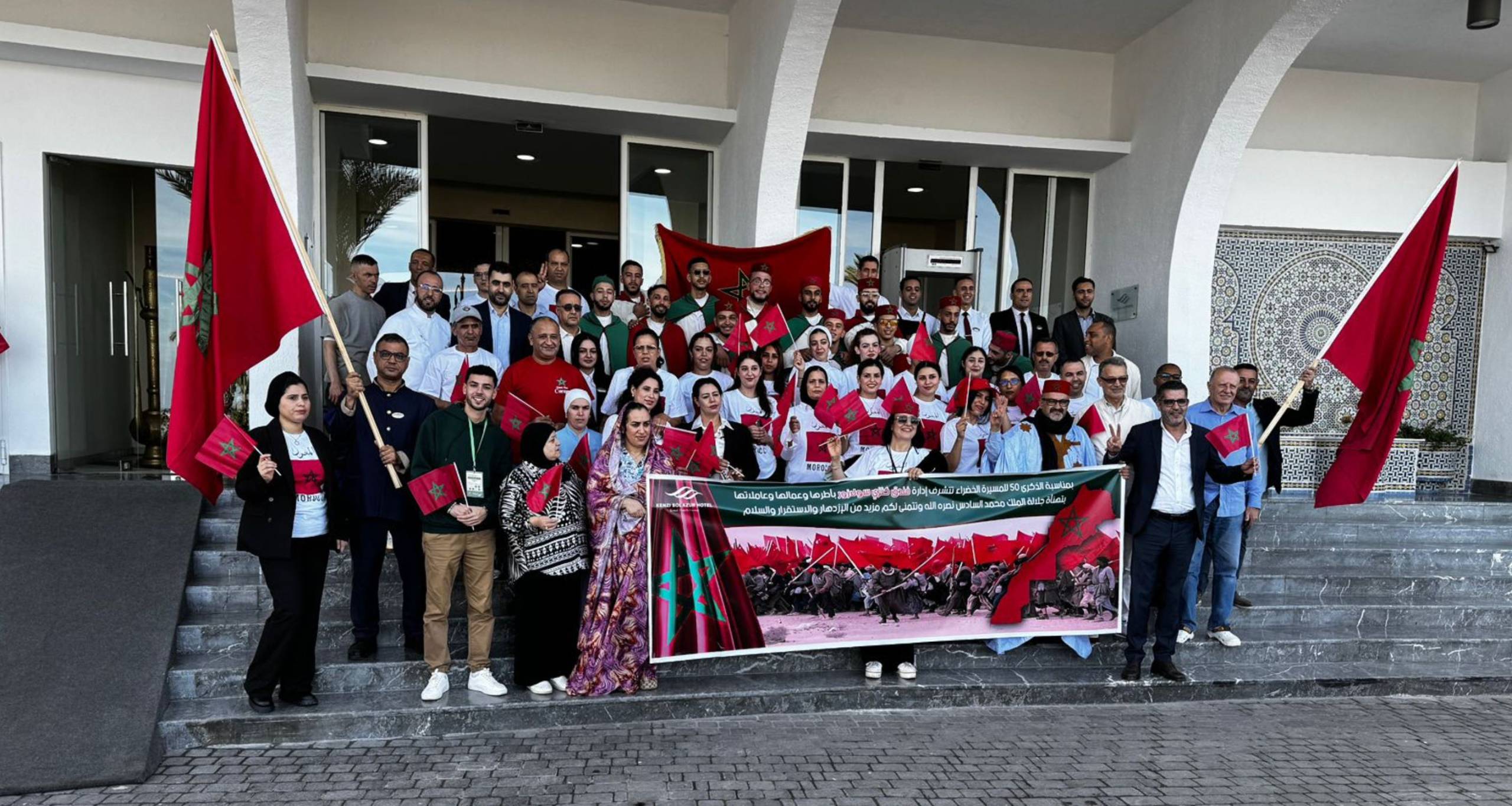 Ce 6 novembre, qui marque le 50ème anniversaire et une date emblématique pour le Maroc, le personnel du Kenzi Solazur s’est rassemblé dans une atmosphère festive et patriotique pour rendre hommage à la Marche Verte. L’événement a été marqué par un profond sentiment d’unité et de solidarité, reflétant l’attachement des employés aux valeurs nationales.
