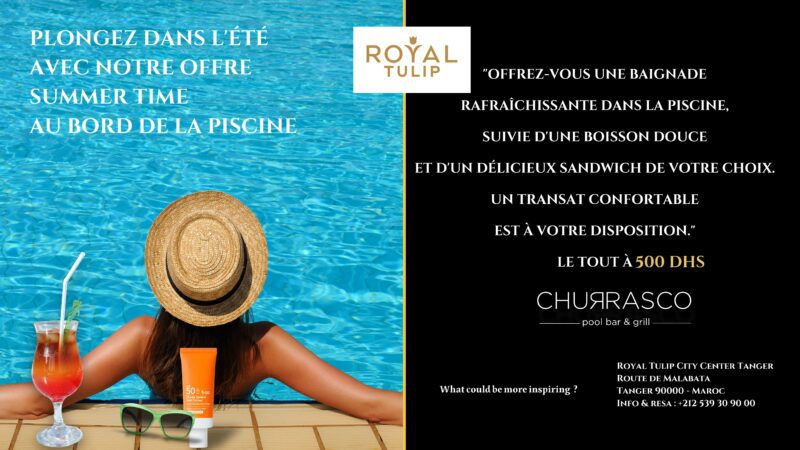 Pour compléter votre expérience, le Royal Tulip City Center Tanger a prévu pour vous une boisson douce de votre choix, idéale pour vous rafraîchir après votre baignade. Accompagnez-la d’un délicieux sandwich, pour un déjeuner léger et savoureux au bord de la piscine.