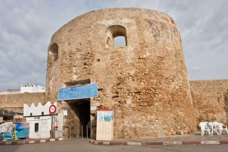 Parmi les bastions et tours les plus remarquables, la Coraça (Borj al-Bahr) et la Torre de Menagem (Borj al-Kamra) se distinguent. La première, construite entre 1508 et 1516, avance sur la mer et servait à surveiller les arrivées et départs d’approvisionnements et de renforts. La seconde, en tant que tour principale du rempart, se présente avec une allure imposante. Cependant, ces fortifications n’ont pas pu empêcher la victoire musulmane et le retour de la ville sous souveraineté marocaine au XVIIe siècle.