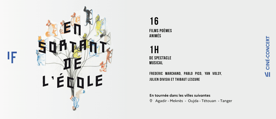 Ce samedi 24 mai à 19h30, la salle Beckett de l’Institut Français de Tanger sera le théâtre d’un événement artistique unique : le ciné-concert « En sortant de l’école », une fusion poétique entre le cinéma d’animation et la musique en direct.