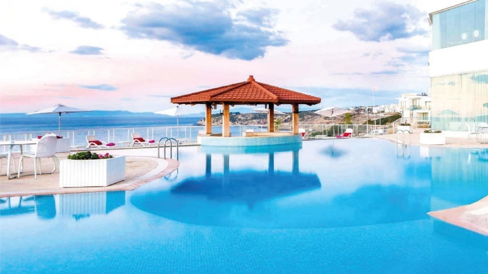 Vue panoramique de la piscine face à la baie au Farah Hotel à Tanger