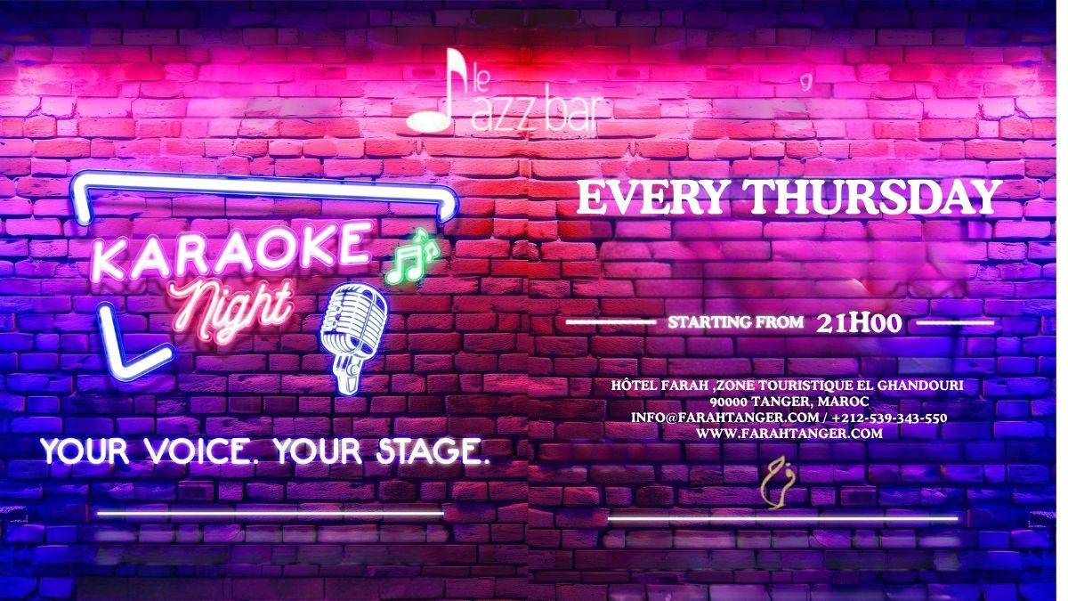 Les amateurs de musique et d’ambiance conviviale ont désormais leur rendez-vous hebdomadaire. Le Farah Hotel Tanger organise chaque jeudi, à partir de 21h00, une soirée baptisée “Karaoké Night” au sein de son élégant Jazz Bar.