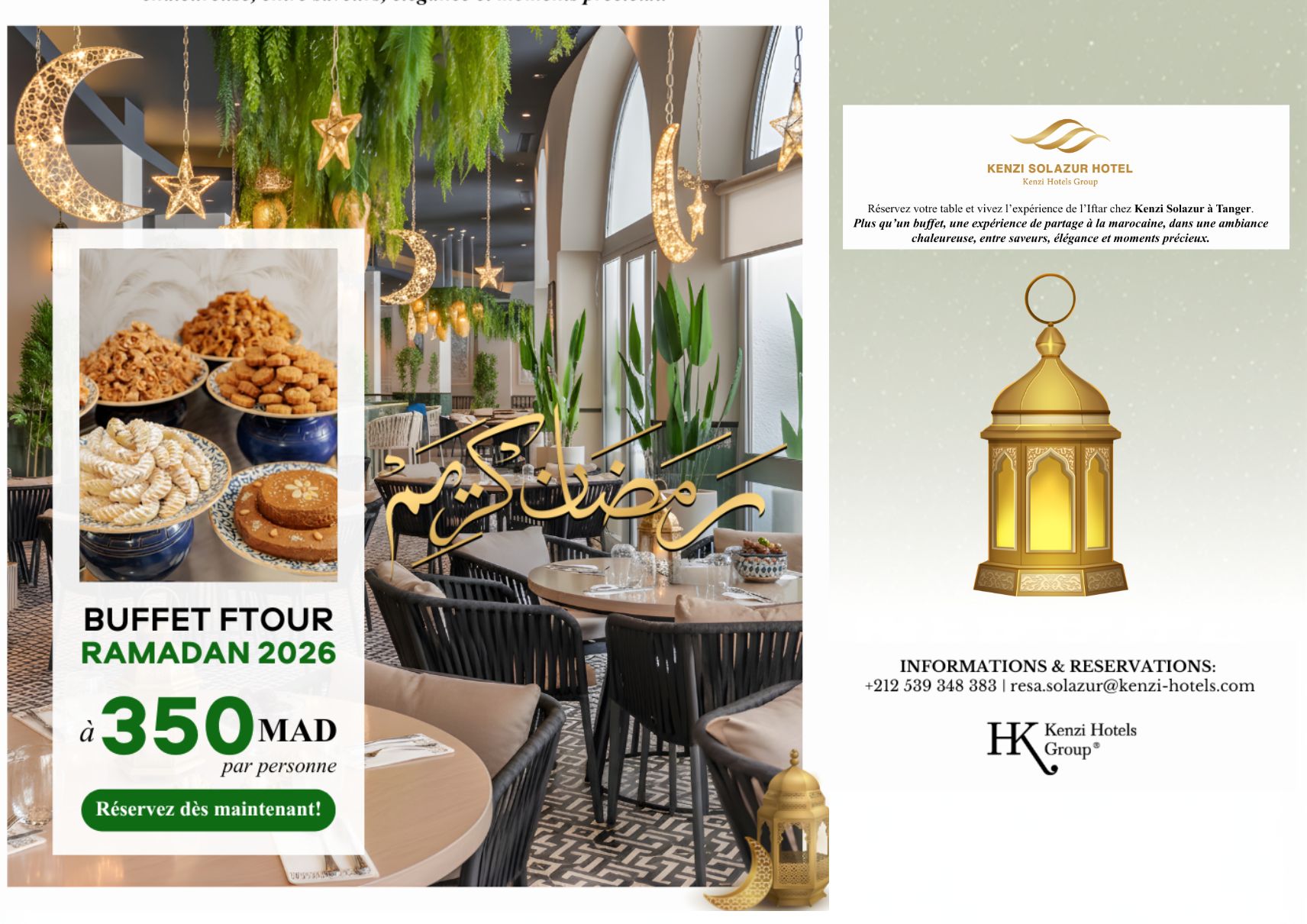 Pour prolonger l’expérience, les chambres, suites et duplex offrent une vue imprenable sur la mer, permettant de savourer la beauté de la corniche tangéroise au lever ou au coucher du soleil. Le Kenzi Solazur Hotel s’impose ainsi comme une adresse incontournable sur la corniche de Tanger, où le ftour devient un moment raffiné et mémorable, mariant convivialité, gastronomie et sérénité pour célébrer pleinement le Ramadan.