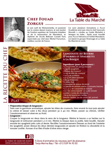 Home»Tourisme»La Table du Marché – Chef Fouad Zorgui vous offre la recette de la langouste au beurre d’herbes et aux spaghettis à La bisque.