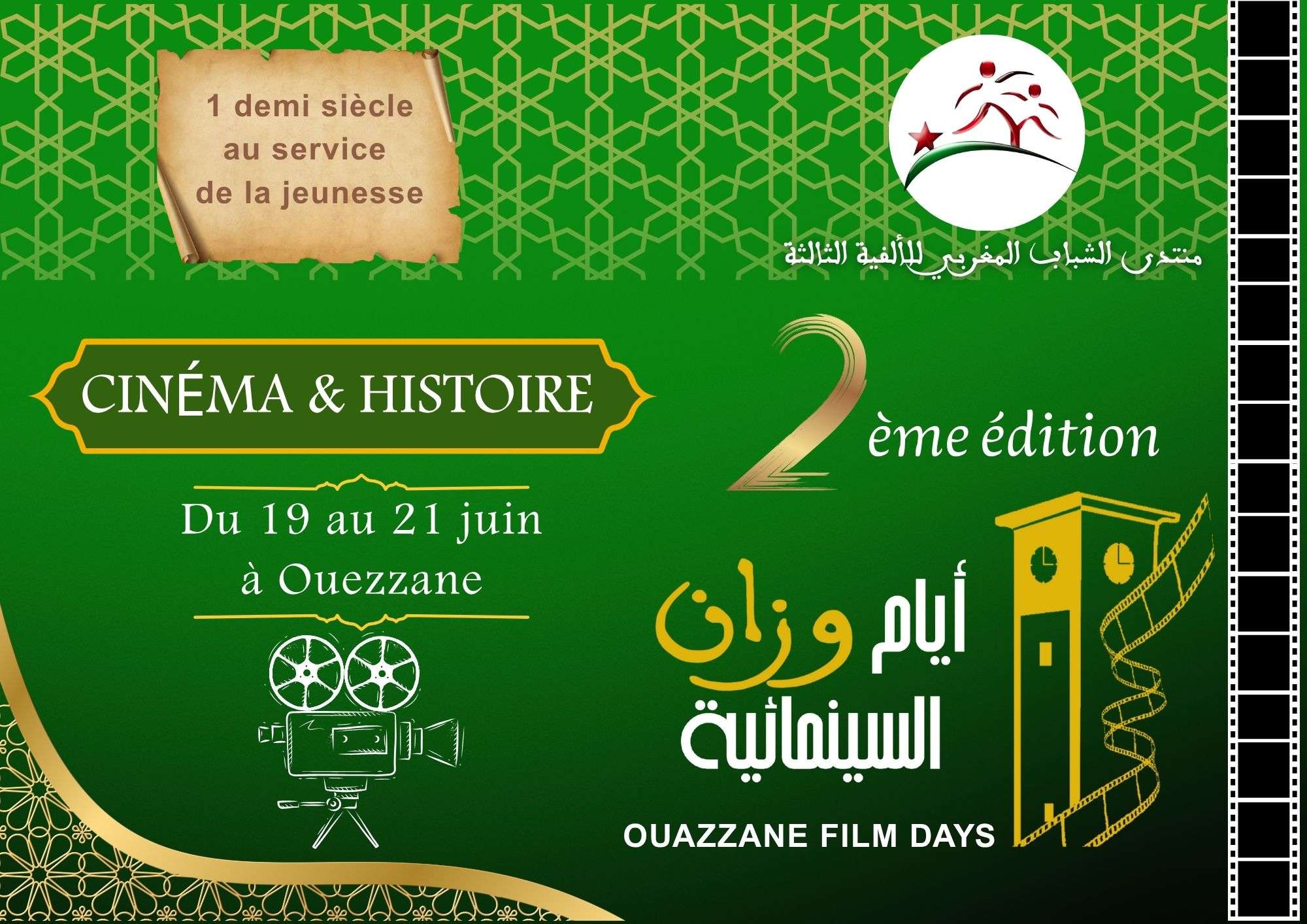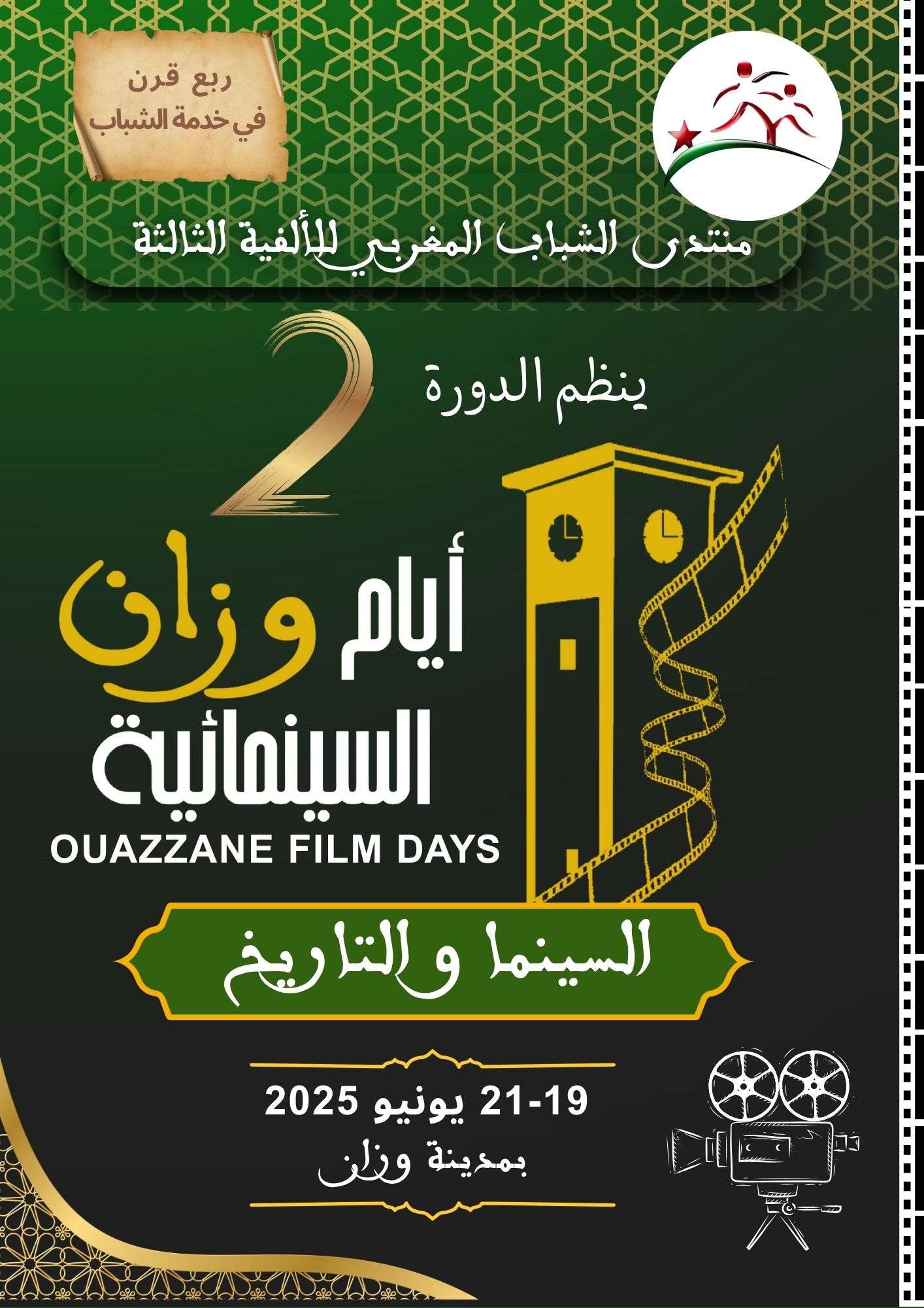 Après une première édition réussie qui a su insuffler une véritable dynamique cinématographique à Dar Damana, le Forum des Jeunes Marocains pour le Troisième Millénaire annonce la deuxième édition des Journées Cinématographiques d’Ouezzane, qui se déroulera du 19 au 21 juin 2025.