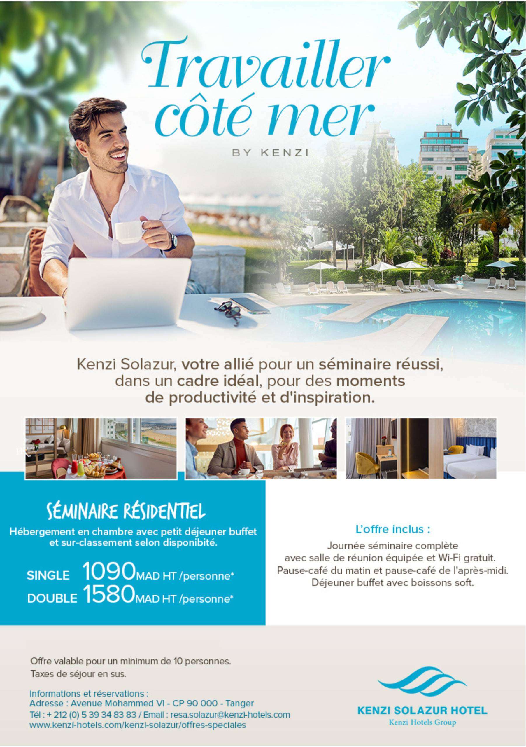 Organiser un séminaire efficace et inspirant nécessite un cadre approprié, et l’Hôtel Kenzi Solazur se présente comme l’endroit idéal pour répondre à vos attentes. Situé sur la corniche de Tanger, en face de la mer Méditerranée, cet hôtel allie confort, professionnalisme et services adaptés pour garantir une expérience mémorable. Choisir l’Hôtel Kenzi Solazur pour votre séminaire, c’est opter pour un cadre propice à l’efficacité et à l’inspiration. Avec des offres adaptées et un service de qualité, vous êtes assuré de créer des moments mémorables pour vos équipes.