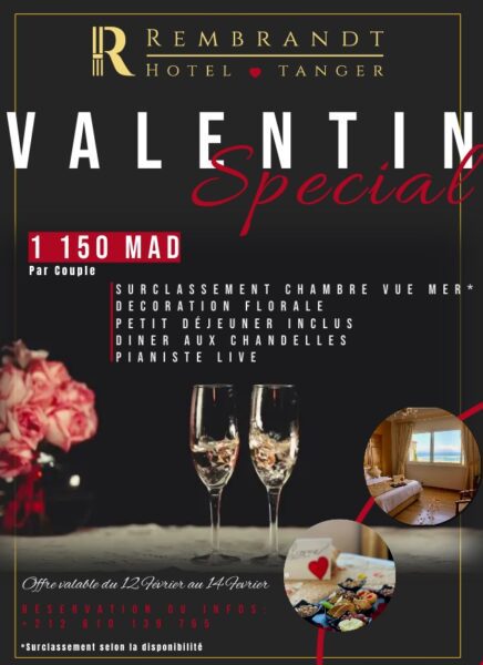 Hôtel Rembrandt : Séjour Spécial Valentin à 1.150 dhs le couple (valable du 12 au 14 février)