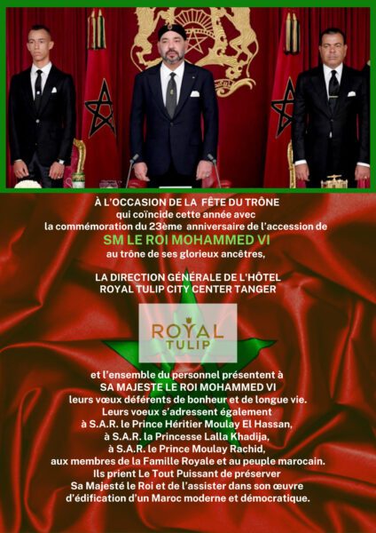 L’hôtel Royal Tulip City Center Tanger félicite le Souverain Mohammed VI