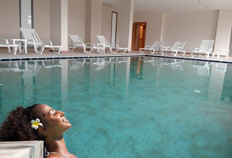 Imaginez-vous, allongé sur une chaise longue douillette au bord de la piscine de l’Hôtel. Le soleil caresse délicatement votre peau, réchauffant chaque centimètre de votre corps et vous enveloppant d’une douce chaleur. Les reflets chatoyants de l’eau scintillent sous les rayons du soleil, créant un spectacle hypnotisant qui vous transporte instantanément dans un état de tranquillité absolue.