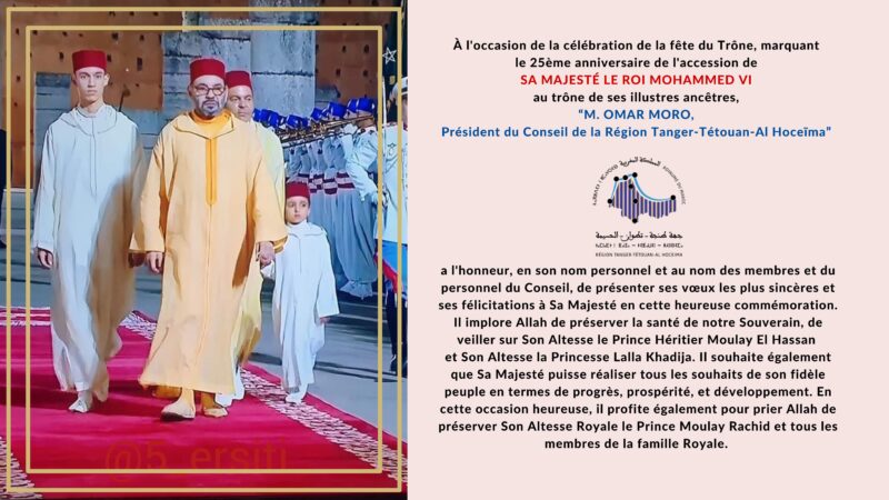 À l’occasion de la célébration de la fête du Trône, marquant le 25ème anniversaire de l’accession de