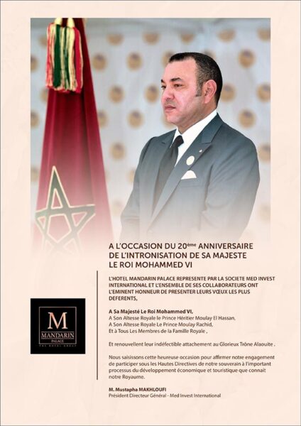 Nous saisissons cette heureuse occasion pour affirmer notre engagement de participer sous les Hautes Directives de notre Souverain à l’important processus du développement économique et touristique que connait notre Royaume.