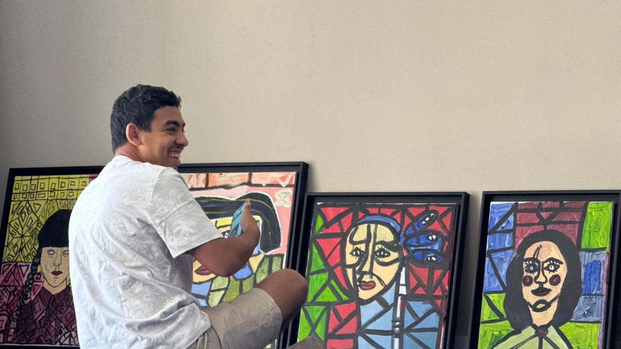 Né avec une tumeur au cerveau, Omar a subi une opération précoce, qui a permis d’enlever la tumeur, mais il a dû vivre avec les séquelles d’un trouble du langage, la dysphasie, qui persiste encore aujourd’hui. Cependant, au lieu de se laisser définir par ces obstacles, il a trouvé dans l’art une échappatoire et un moyen d’expression. La peinture est devenue pour lui un canal privilégié pour libérer sa parole intérieure.