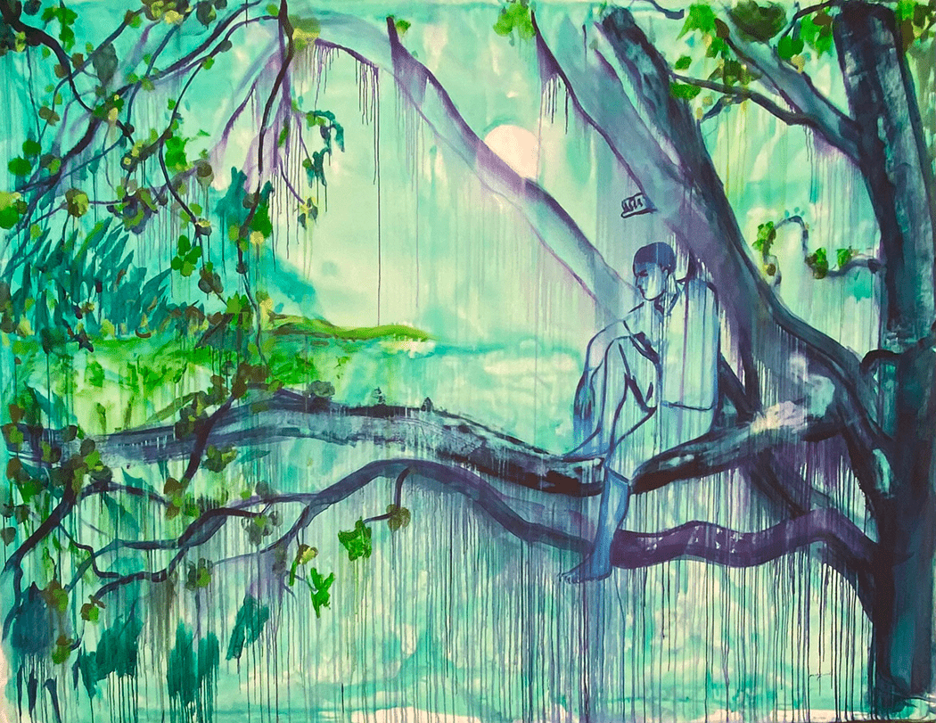 Des branches oubliées est aussi une ode à l’enfance, à ces fragments de vie que l’on croit perdus mais qui refont surface sous la forme d’images, de couleurs ou de formes. L’exposition interroge la manière dont la mémoire travaille l’artiste, non pas pour figer le passé, mais pour en faire émerger une émotion nouvelle, libre, introspective, en dialogue avec le monde.