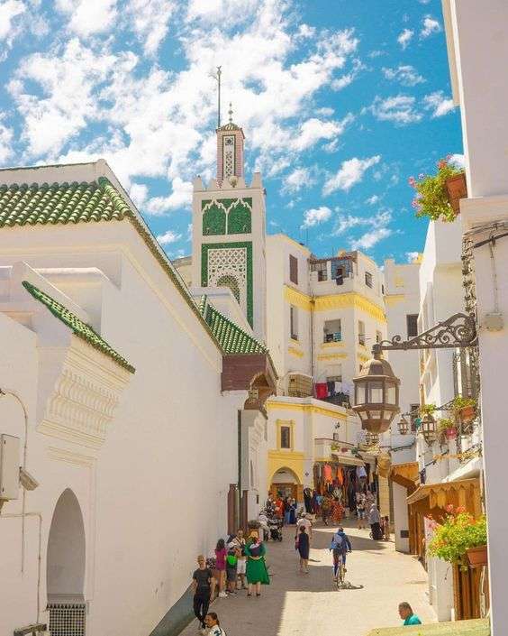 – Tétouan, belle ville entre mer et montagnes, charmante avec son patrimoine culturel flamboyant ! Ses ruelles blanches et son architecture andalouse vous invitent à une promenade féerique. La médina, patiemment gardée sous le label UNESCO, est un véritable musée à ciel ouvert, où chaque coin de rue, avec ses maisons chapeautées de chaux et ses zelliges colorés, raconte une histoire à explorer.