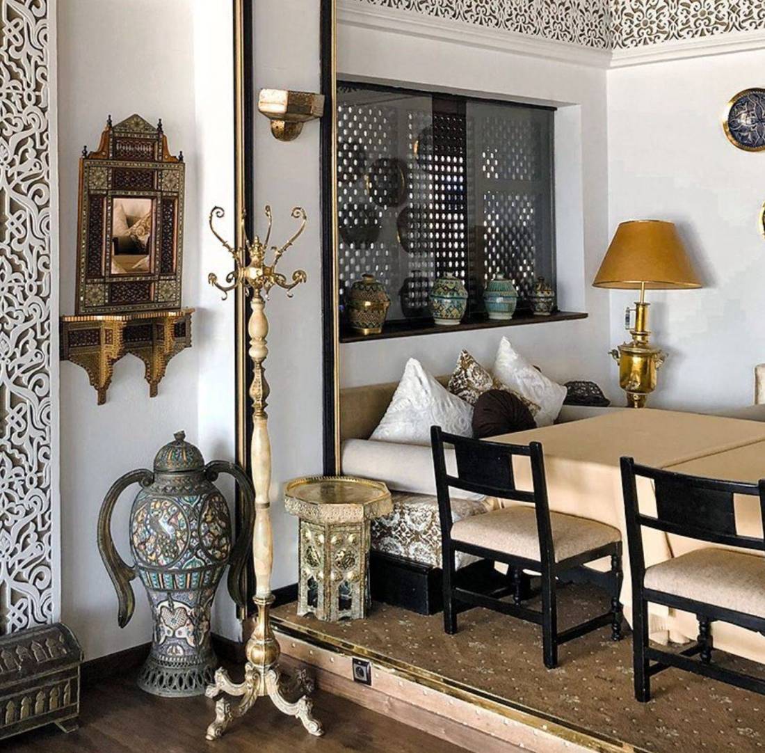 Dès l’entrée, le charme et l’authenticité se font sentir. Le lobby, décoré de boiseries arabesques, tapis orientaux et portes voûtées, invite à la détente. De nombreux espaces offrent des panoramas sur la mer et le port de plaisance, tandis que la cour andalouse, cœur de l’établissement, séduit par ses colonnes en pierre sculptées et ses portes en bois ornées, alliant beauté historique et convivialité. Cet espace accueille les petits-déjeuners, les tea times et dîners en plein air, permettant de profiter pleinement de la douceur hivernale de Tanger en admirant l’architecture historique.