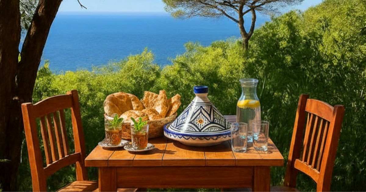 Restaurant du jardin botanique Donabo à Tanger, cuisine du terroir, nature et vue sur mer