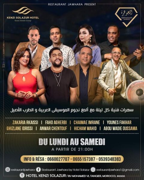Ce sont de talentueux musiciens et chanteurs qui reprennent l’affiche de l’hôtel Kenzi Solazur, dans un programme musical varié typiquement arabe, pour vos soirées!