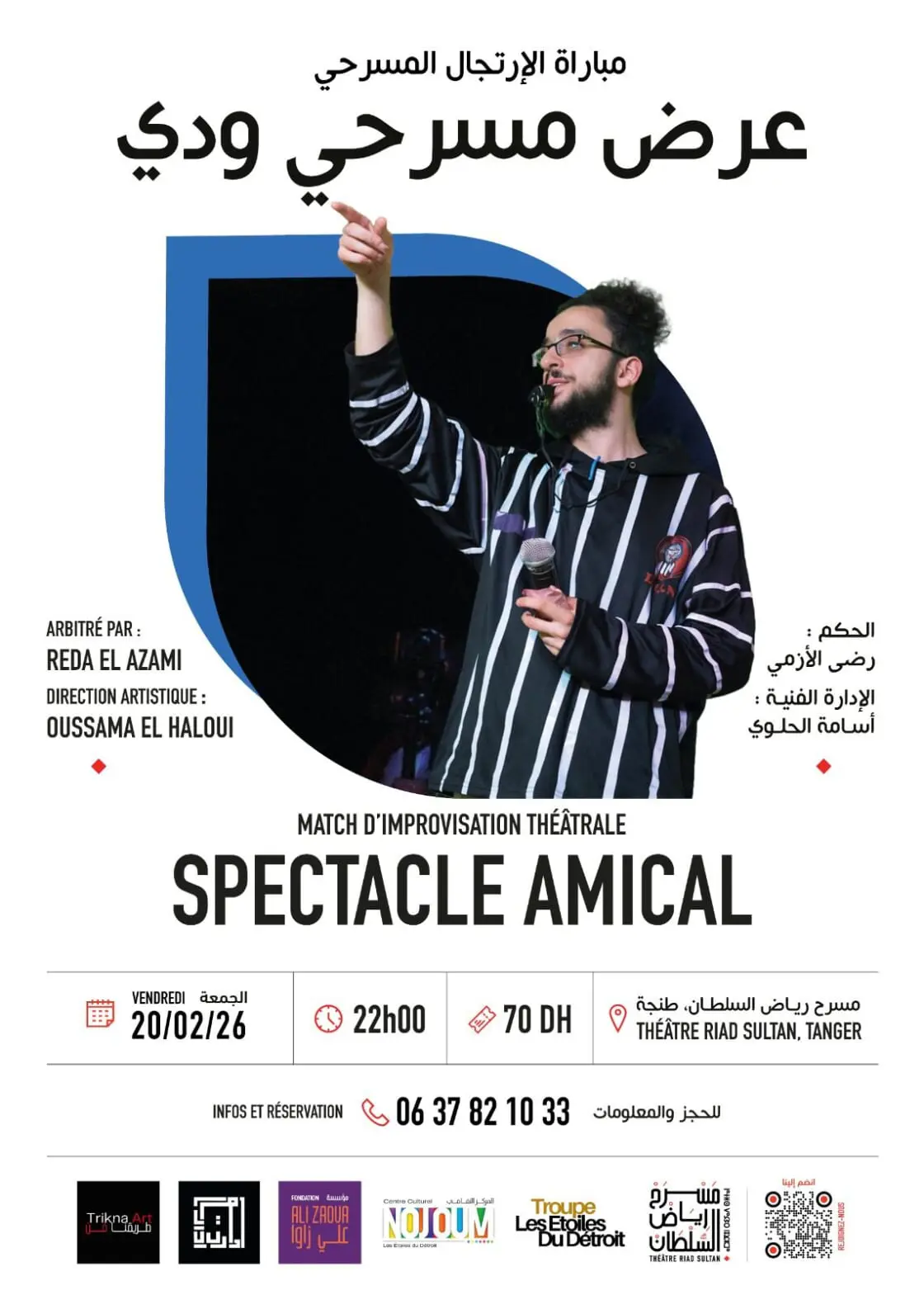 Un match pas comme les autres se prépare au Théâtre Riad Sultan. Le vendredi 20 février à 22h00, le public est invité à vivre une soirée exceptionnelle de théâtre interactif avec « Match d’improvisation théâtrale », présenté par l’association Art Club – Triqna fenne, en partenariat avec la Fondation Ali Zaoua et la troupe Alboughaz, sous l’arbitrage de Reda El Azami.