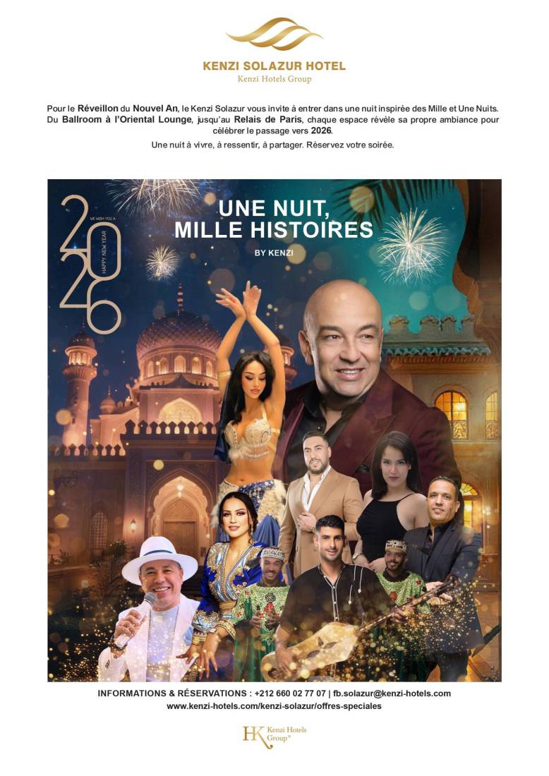 Cette soirée de Saint-Sylvestre au Kenzi Solazur dépasse le simple cadre d’un réveillon, elle devient une célébration immersive, où tradition et modernité se rencontrent. Chaque convive est invité à vivre intensément cette parenthèse enchantée, à savourer l’instant présent et à créer des souvenirs qui resteront gravés bien au-delà de la nuit du 31 décembre. Au cœur de Tanger, cette célébration s’annonce comme un passage à l’année 2026 mémorable, offrant une expérience riche, festive et pleine d’émotion, fidèle à l’esprit des Mille et Une Nuits.